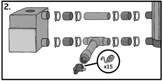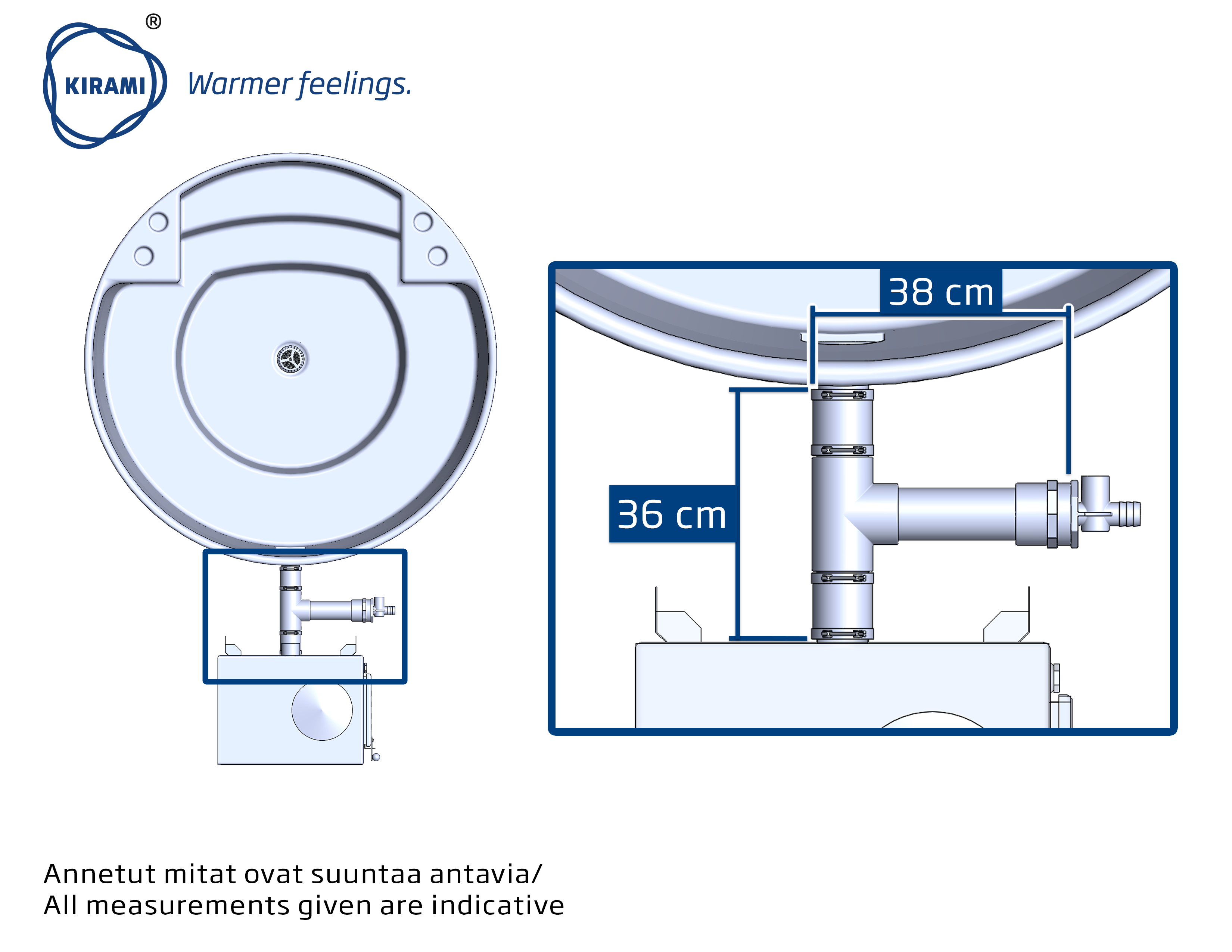 De set bevat de benodigde onderdelen om de afvoerkraan te installeren tussen de kachel en het bad. Het product is exclusief Kirami’s afvoerkraan; de bij de hottub meegeleverde afvoerkraan wordt verplaatst naar de tussenset. De afvoerleiding in de hottub wordt afgesloten met de bij de set meegeleverde plug. Na installatie van de kit bedraagt de afstand tussen de kachel en de hottub 36 cm.