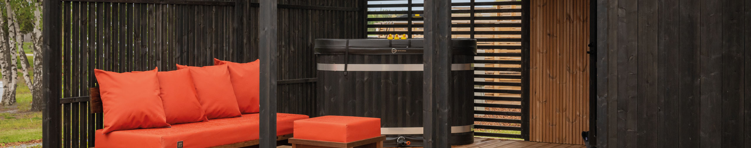 De Kirami FinVision® -pergola uit het Misty-assortiment is een complete module die makkelijk aan andere Misty-gebouwen bevestigd kan worden. Je kunt de pergola tussen een sauna, een kleedkamer, een lounge of een terras plaatsen, maar je kunt de pergola ook aan andere modules koppelen of in het verlengde van of tegenover andere modules zetten om een lekker koel plekje te creëren. Een derde optie is om de pergola als losstaande module te kopen en te gebruiken als overdekte patio, bijvoorbeeld om te zonnen. De modules bestaan in twee afmetingen.
